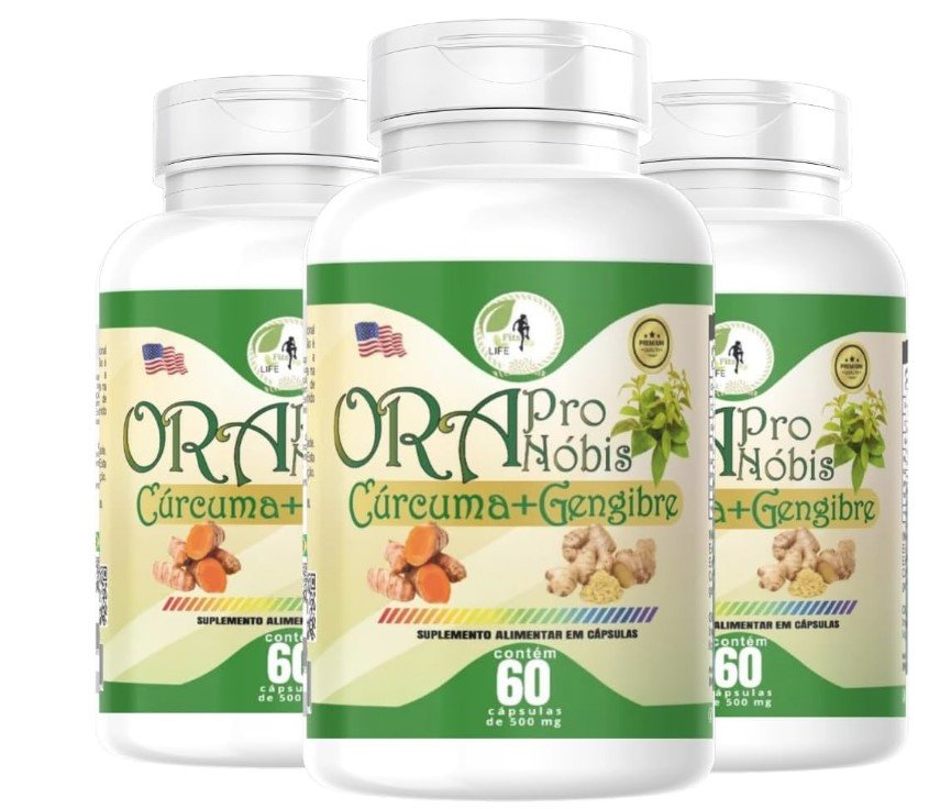 KIT C/3 Ora Pro Nobis Cúrcuma + Gengibre, 60 Cápsulas, 500mg, Suplemento Alimentar